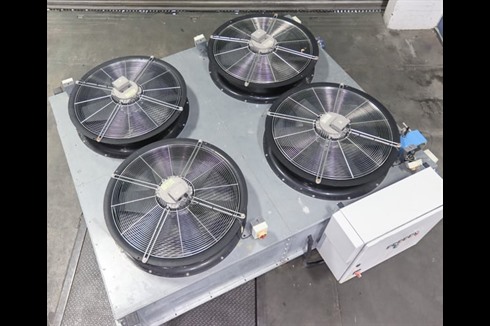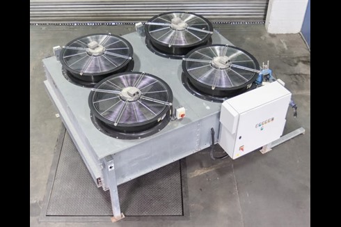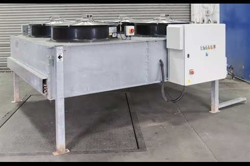 The ICS Air Blast Cooler system uses a dry air cooler with a 3-way valve to divert and cool the process fluid in a conventional chiller system.