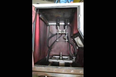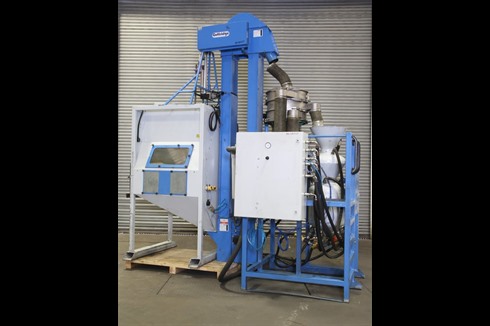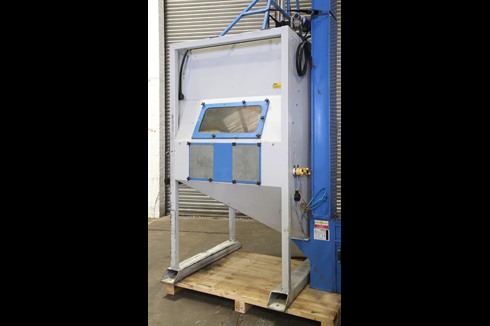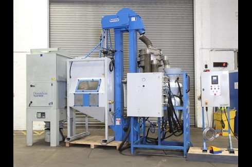 This blasting system is designed for the automatic cleaning of jet engine blades. The blast cabinet includes a powered turntable and fitted to a linear actuator are 4 blast nozzles. Media recovery including sieving for re-use is also used, plus a powerful dust extraction system.