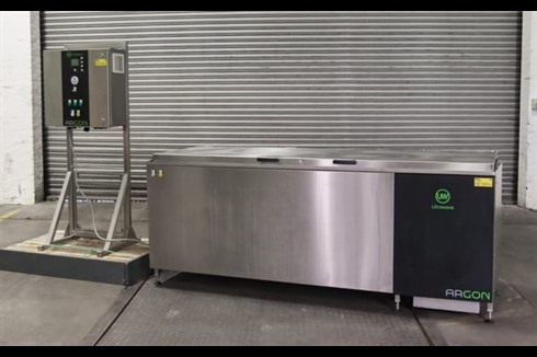 This unused, 500 litre Argon 629 Ultrasonic cleaning system features a stainless steel tank, powered by 4.8kW ultrasonic generator & transducers and heating capacity of 9kW. A comprehensive control panel gives control of the system with a 24 hour, 7 day timer & 5 options for cleaning programmes.