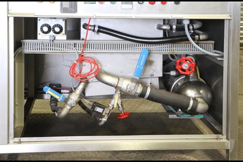 All stainless steel solvent tank cleaning machine. 90 Litre capacity with twin high pressure side booms mounted 250mm and 280mm above the base of the tank to act as sparge jets, increasing the cleaning / washing power of the solvent and the machine.