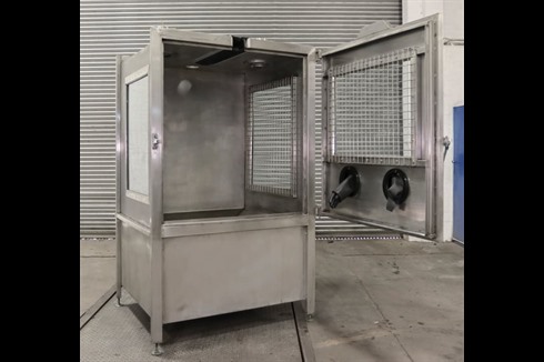 This Stainless Steel booth has been designed to allow a multitude of cleaning activities to be performed within a save working environment. A large access door, large viewing windows and operator gauntlets protect the operators and the working environment from the cleaning process.