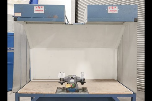 Lakestyle downdraft fettling booth for the control of dusts from manual grinding, fettling, fibreglass and composite materials trimming type operations. Fitted with a 240 volt, off hand grinder.