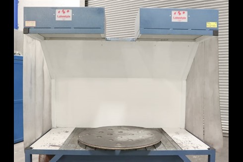 Lakestyle downdraft fettling booth for the control of dusts from manual grinding, fettling, fibreglass and composite materials trimming type operations. Bench has been dismantled, cleaned and re-assembled. Filters have also been cleaned.