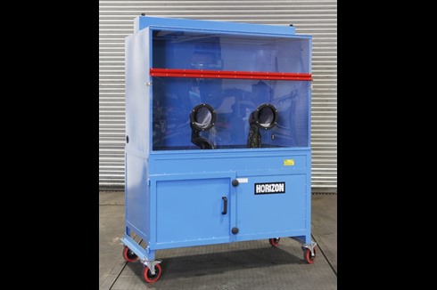 Enclosed downdraught work bench with see through front panel and twin gauntlets give the operator total protection from nuisance dusts. Connection to an external dust extraction unit will be required to remove the dust to a suitable collection point.