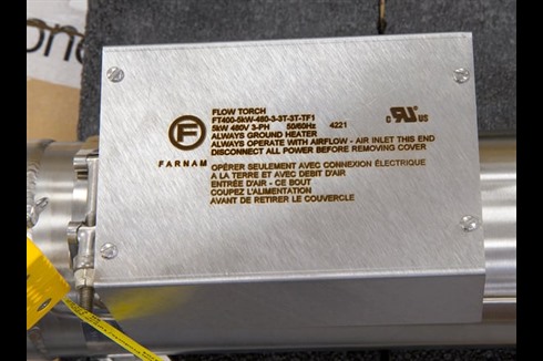 Flow Torch™ 400 is an open coil air heater designed for high flow rates at low pressure drop due to its efficient design with minimal flow restrictions. The robust construction of this 6” diameter stainless steel heater offers reliable long-life performance and reduced operational cost.