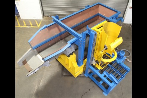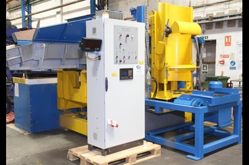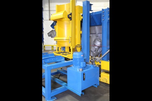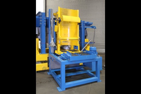 Charging system comprising of a 1 tonne capacity static drum tilter and a one 1 tonne capacity mobile vibratory furnace charging machine with onboard weighing load cells. Complete with one main control panel and one remote control panel.