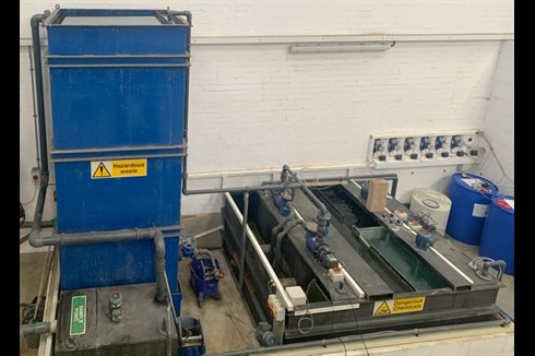 The plant is designed to automatically treat up to 1000 litres/hour of chromium, cyanide acid/alkali and alkali cleaner, rinse waters from the electroplating line.