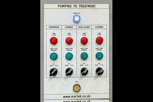 The plant is designed to automatically treat up to 1000 litres/hour of chromium, cyanide acid/alkali and alkali cleaner, rinse waters from the electroplating line.