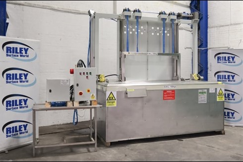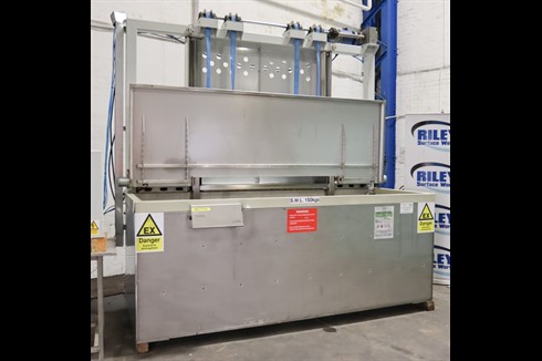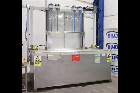 Electrically operated immersion with Sparge agitation solvent dunk washing/degreasing machine. Manufactured from stainless steel this very large immersion/agitation solvent cleaning machine comes with a bifurcated fume extraction fan suitable for connecting to a suitable fume scrubber or extraction unit.