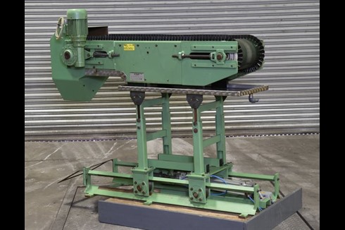 Rosler flighted belt conveyors are an ideal way of conveying products at angles greater than 30 degrees, which could cause the product to slide or roll back down the conveyor. Pneumatic Shuttle in/out of load/unload position.