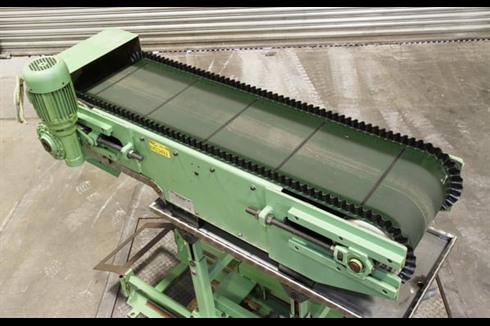 Rosler flighted belt conveyors are an ideal way of conveying products at angles greater than 30 degrees, which could cause the product to slide or roll back down the conveyor. Pneumatic Shuttle in/out of load/unload position.
