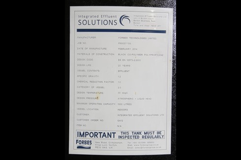 Forbes 1,000 Litres Storage / Treatment Tank with multiple heavy duty flanged inlets and outlets.