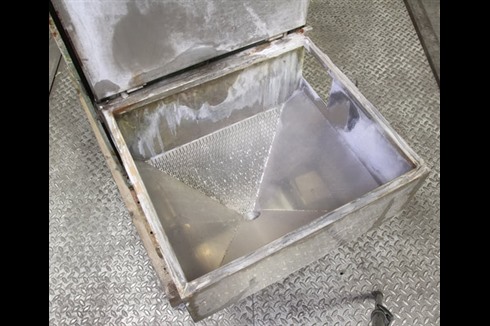 A lift and load device built by CraneCare to work in conjunction the the Dreher VT 5 range of machines (Our stock number VT1037 A & B) for replenishing the media and parts into the processing bowls.