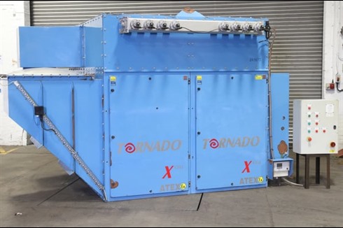 The Tornado 16 Xcell R reverse jet cartridge filter dust extractor features rotary valve discharge, one 45 gallon drum waste collection and pedestal floor mounted fan set complete with a 15kW motor.