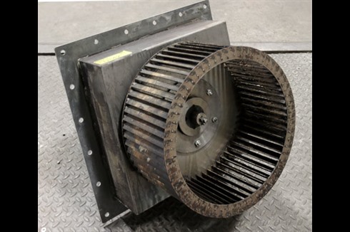 A Multivane plug fan with a 4kW (5.4Hp) motor mounted into a fixing plate. Direct drive, Ideal for air circulation within a ducting set up or other application where air circulation is required.
