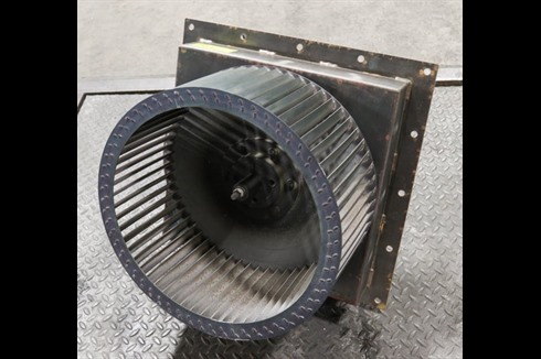 A Multivane plug fan with a 5.5kW (7.3Hp) motor mounted into a fixing plate. Direct drive, Ideal for air circulation within a ducting set up or other application where air circulation is required.