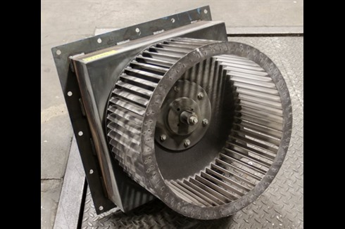 A Multivane plug fan with a 5.5kW (7.3Hp) motor mounted into a fixing plate. Direct drive, Ideal for air circulation within a ducting set up or other application where air circulation is required.
