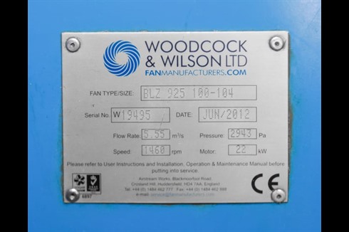 High power general purpose centrifugal extraction fan. 22kW // 29.5 HP motor rotating at just under 1460 rev/min. All metal construction fixed to a welded steel frame.