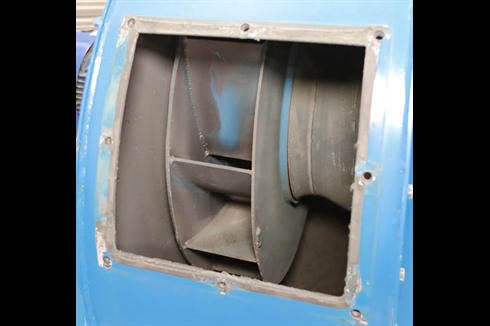 High power general purpose centrifugal extraction fan. 22kW // 29.5 HP motor rotating at just under 1460 rev/min. All metal construction fixed to a welded steel frame.