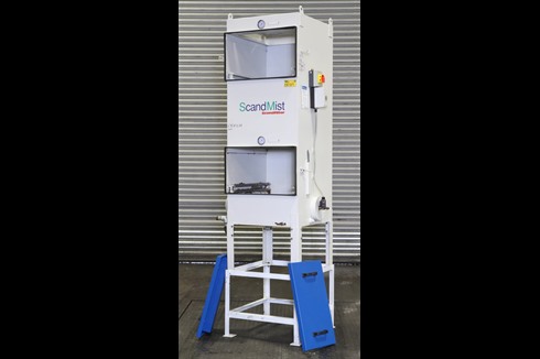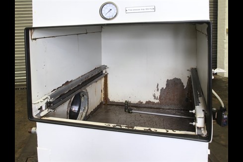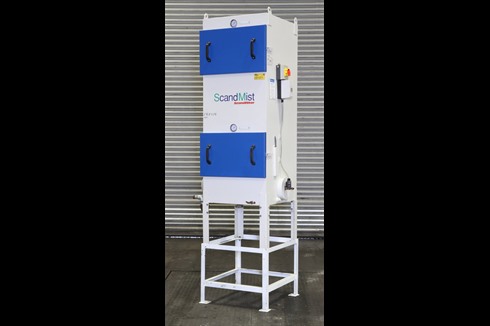 A heavy duty industrial air cleaner for effectively separating oil mists, oil fumes and emulsion mists during continuous operations. There are three filter stages with differential pressure gauges at each step.