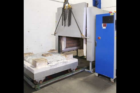 Hendrick Industrial Equipment Ltd Pre-oxidization and Annealing Furnace with 2 rail mounted carts/ bogeys to allow components to be wheeled into and out of chamber. 0-925°C temperature range, switchgear, accessories and spares, rebuilt in 2003.