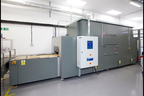 Caltherm very high quality, late model conveyor 250°C oven (2018) Caltherm industrial ovens are used in a huge variety of industrial processes, including heat treatment, curing, drying, stabilization, carbonization, etc.