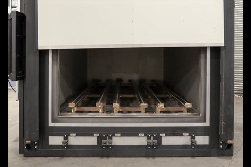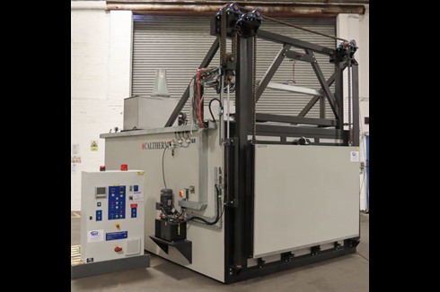 A 350°C AMS2750E Class 3 Industrial oven from the world leading oven manufacturer, Caltherm. This comes with ATEX explosion relief panel, 11kW // 14.75Hp air circulation fan, purge system and powered vertical front opening door.