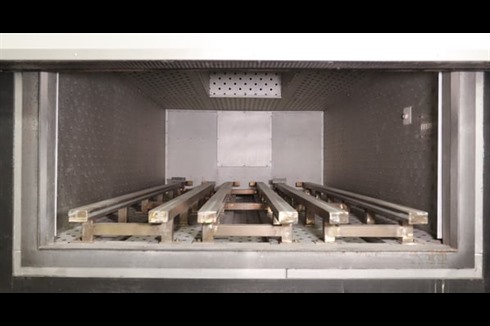 A 350°C AMS2750E Class 3 Industrial oven from the world leading oven manufacturer, Caltherm. This comes with ATEX explosion relief panel, 11kW // 14.75Hp air circulation fan, purge system and powered vertical front opening door.