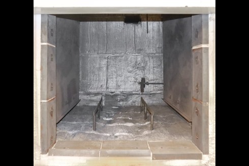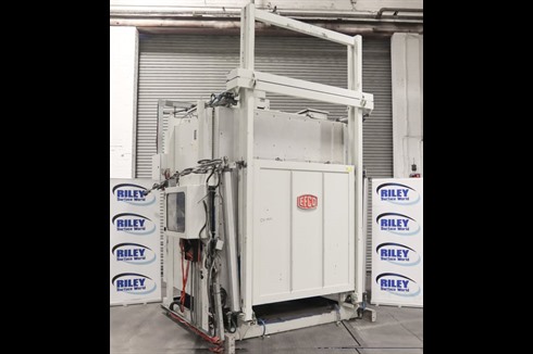 An Efco 850°C electric heavy duty box furnace with powered vertical opening door. Originally commissioned for the aerospace industry for the heat treatment of steel and aluminium components.