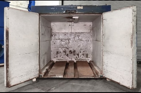This heat treatment oven for drying, curing, annealing, tempering, and stress relieving, featuring double doors to provide the best possible access. Well made, this oven would complement any manufacturing site.