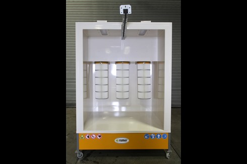 Romer's range of powder coating spray booths allow for the manual application of powder, run quietly, and are controlled by and easy-to-use touch screen.