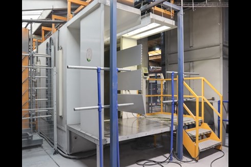 A Gema bespoke, automatic, full mono rail conveyor, cleaning, drying, powder coating and curing system. Full powder recovery, self cleaning booth and multiple reciprocating gun set up. Ideal for a single powder coating cell set up which can be adapted for most simple or complex powder coating requirements.