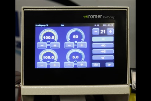 The Romer ProfiSpray V powder coating gun is a high quality powder coating corona gun designed for simple operation with excellent coverage. Programmable control is via a touch screen.