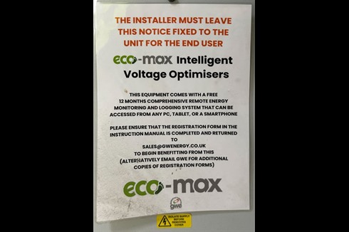 The eco max voltage optimiser is designed to regulate the incoming voltage supply to a building or facility, ensuring that it operates at the most efficient level.