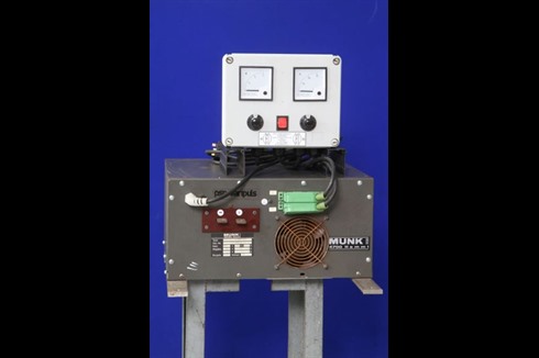 British electrical controller for the MUNK Varipuls Switch-Mode Technology psp family of rectifiers. These new condition controllers are built to order to allow the remote setting of both the voltage and current outputs from the rectifiers and offer a visual output display with inclusive Amp and Volt meters.