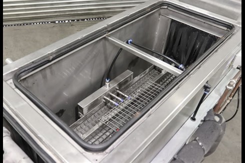 This Technowash AQF 300/4 is designed for industrial parts washing with unparalleled precision cleaning for all types of component parts, finished or semi-finished. The process stages are blow off, hot aqueous spray jet washing, blow off, hot jet rinse, blow off jets and air knife blow off.