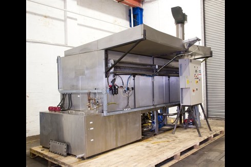 This is a very heavy duty, large capacity, 360° twin traversing aqueous spray wash machine designed to wash parts with hot, high pressure cleaning fluid. Also fitted with a manual spray lance. Load from the top or the side through fully opening and closing sealed doors.