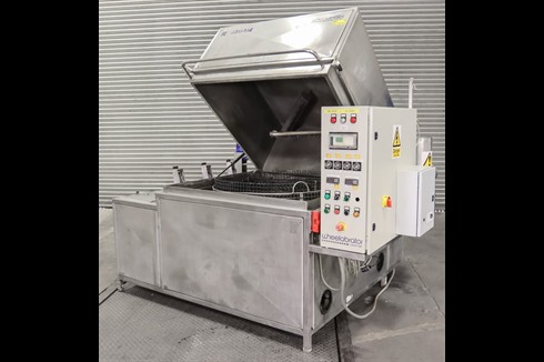 The Technowash/Wheelabrator CleanTek R1000-4 is a multi-stage top loading spray wash machine that has been designed specifically for batch cleaning components to a very high standard with a full wash, twin rinse and air knife blow dry cycle.