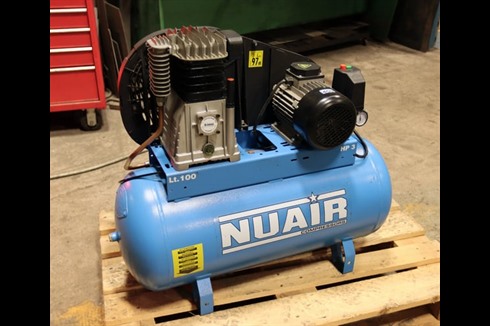 A small self contained air compressor from Nuair, this is a 100 litre model with a 2.2kW / 3Hp motor, 440Volt, 3 phase supply requirements, producing up to 11 bar of pressure.