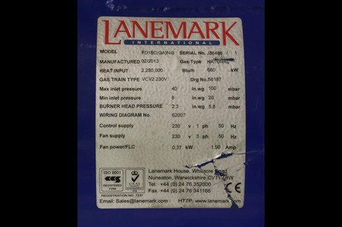 The FD range of burners are forced draught burners designed for industrial process air heating requirements. Short flame lengths, exceptional flame stability and accurate turndown as low as 9kW (30,000 Btu/h) are achieved by the unique Lanemark cone design combustion head.
