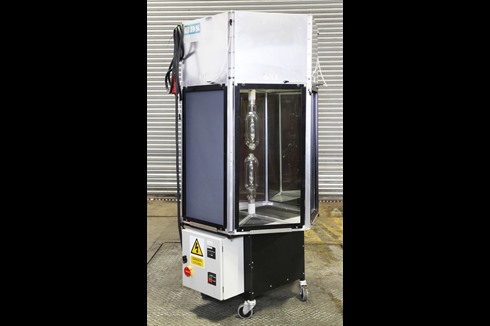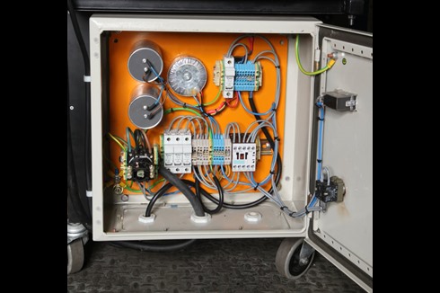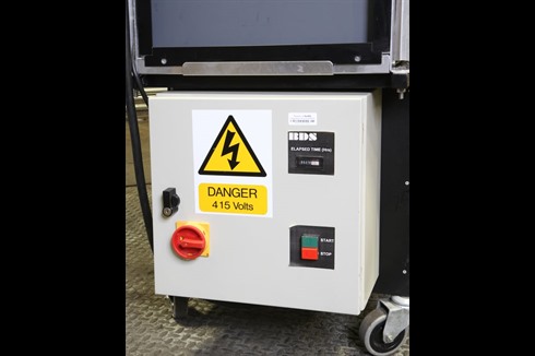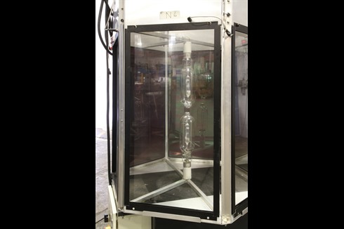 A BDS Solar panel testing cabinet designed to heat soak test solar panels over an extended period. Radium daylight bulbs are used to create daylight testing conditions needed for solar panel testing.