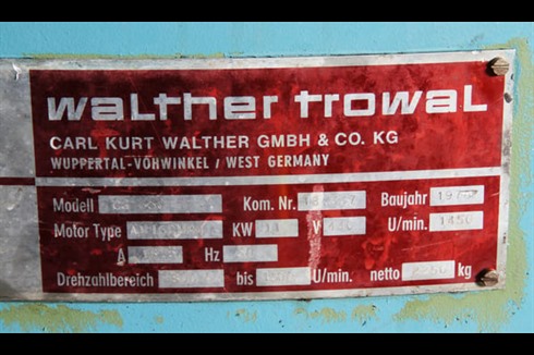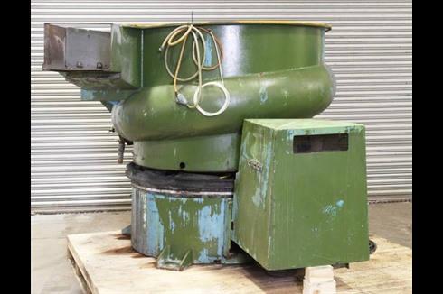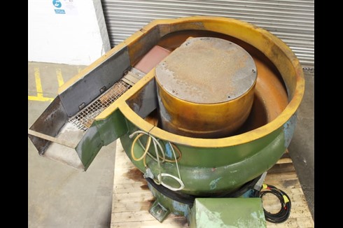 A Walther Trowal, three stage mass finishing cell / process comprising of a loading tipper, large vibratory helical finishing bowl and rotating continuous 3000Kg's/ Hr continuous parts rotary dryer. Electrical control panel included